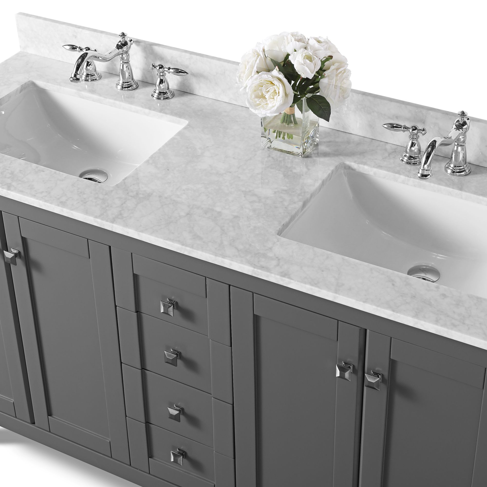 White Marble Double Sink Vanity - Great savings & free delivery / collection on many items.. This model comes with a double layered italian white carrara marble countertop with beautiful gray veins. This 61 inch traditional double sink bathroom vanity is a perfect center piece for your bathroom project. Choose from hundreds of traditional and modern bathroom vanity units in all styles and designs, including marble vanity units. But this has to do with other things such as the amount of a double sink bathroom vanity can look less bulky and more delicate and simplistic if you choose vessels look for a durable vanity top. D marble double trough sink vanity top in carrara.